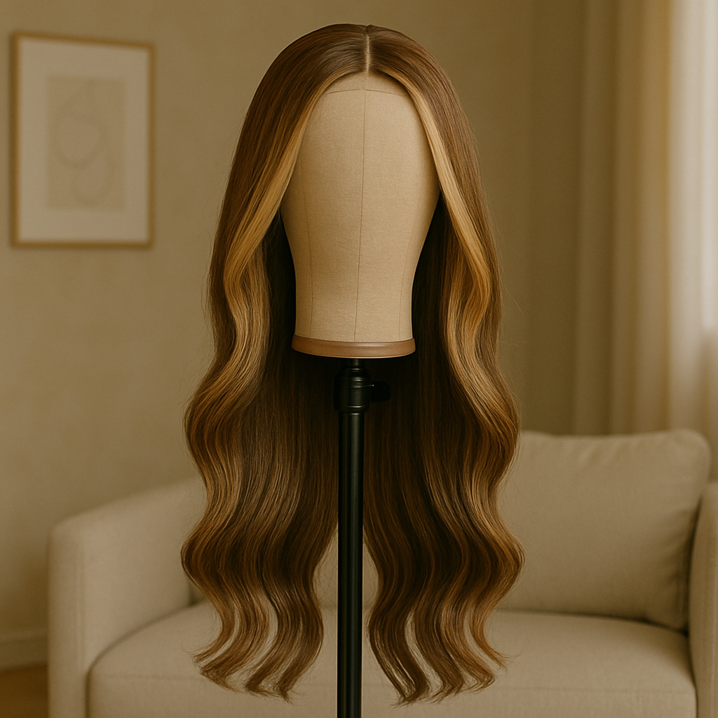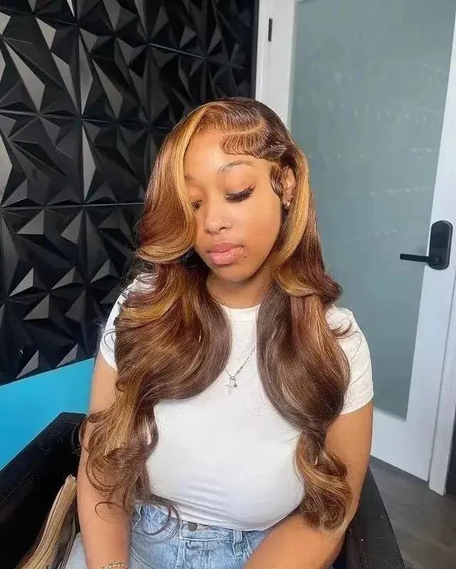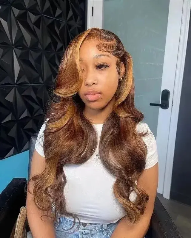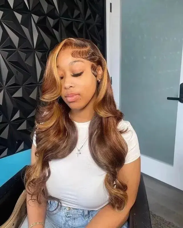 With its rich blend of deep brown and golden honey highlights, the Honey Seduction wig was made to turn heads. Its soft body wave texture flows with natural movement, catching the light with every step. Feminine, radiant, and irresistible, this wig is your secret weapon of confidence.