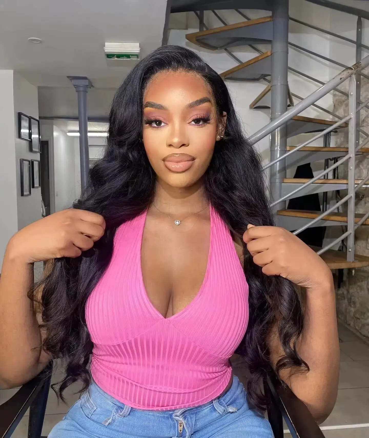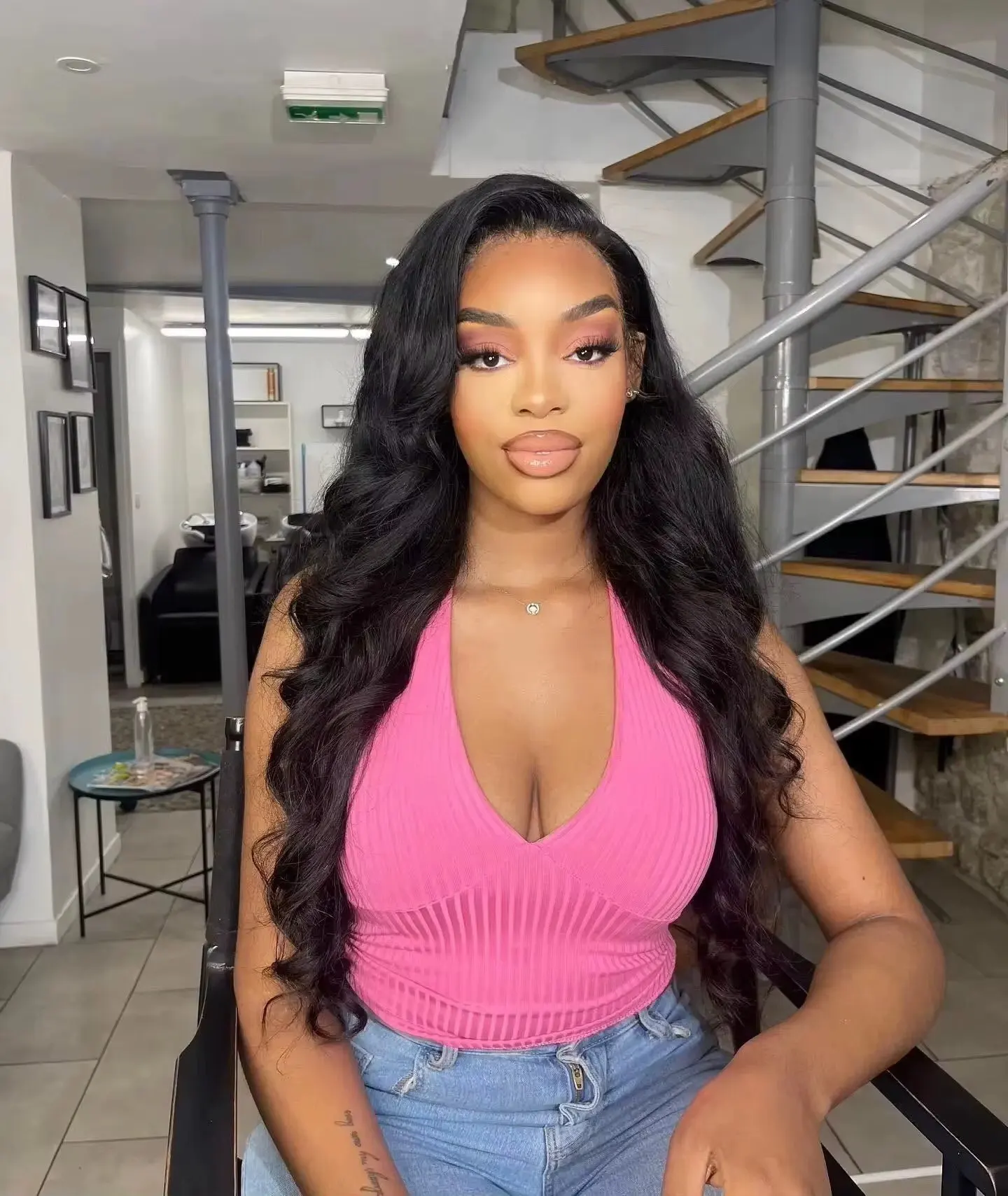 Crafted from 100% Remy Brazilian human hair, it offers soft, silky waves that move naturally and stay tangle-free. The HD 13x4 transparent lace melts seamlessly into your skin, while the pre-plucked hairline with baby hairs gives a flawless, natural finish. With 180% density, it delivers just the right volume, full, yet perfectly balanced. Whether you wear it daily or for special moments, this wig is your go-to for effortless glow and confidence.